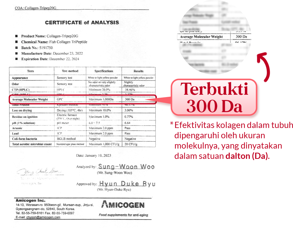 Semakin kecil ukuran dalton, maka akan semakin cepat dan aktif kolagen tersebut terserap kedalam tubuh.